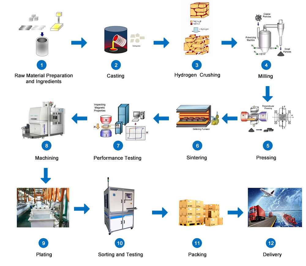 Bu malzemeler tungsten, kobalt, demir ve cıva gibi nadir toprak metalleri kullanılarak üretilir. Kobalt ve demir iki farklı nadir toprak metali ile birleştirilirken, tungsten ve cıva tungsten kullanılarak birleştirilir. Bu dört unsurun birleşimi manyetik alan kuvvetinde etkili bir artışa neden olur. Ayrıca manyetik alanın güçlü bir şekilde hizalanmasını sağlarlar.